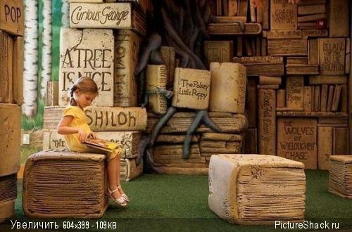 Я думаю, что мои книги, собравшись в кружок, слушают сказки - разные, все что есть в доме. Сегодня они будут особенно стараться - у них в гостях новенькая. Она ненадолго, так что они будут слегка выпендриваться своей некоторой зачитанностью и лохматостью. Но новенькую точно не обидят)).