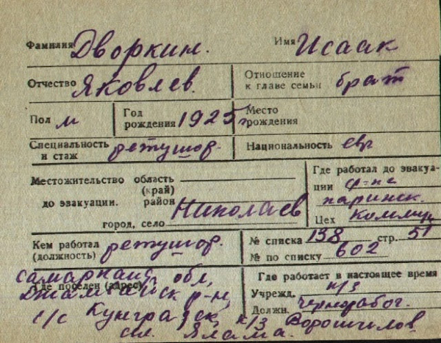 Архив, переданный в Российский красный крест (РКК) в 1948 году по решению Совета по делам эвакуации — самая полная персональная картотека жителей СССР, находившихся в эвакуации в восточных регионах страны.