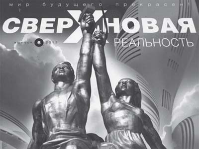И когда ускользающая элегантность редкий раз встречается, ты ею и упиваешься, и наслаждаешься. С образцом элегантности столкнулась я, взяв в руки журнал "Сверхновая реальность" (главный редактор — доктор физико-математических наук Георгий Малинецкий). Не только человека встречают по одёжке, а провожают по уму. И издание. Какие-то книги, журналы и открывать не хочется, когда посмотришь на обложку. А здесь — элегантная чёрно-белая гамма. Скульптура "Рабочий и колхозница" анфас. Словно наступают на тебя.