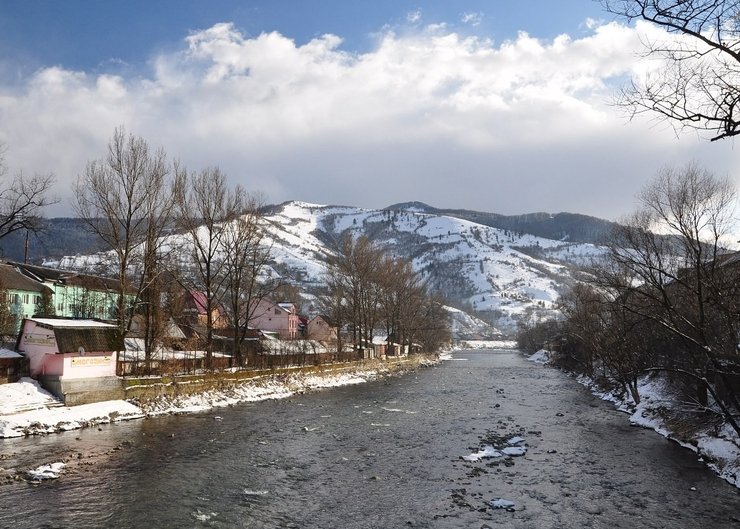 Ниже слияния Чёрной и Белой Тисы в узкой котловине между горами расположен город Рахов. административный центр Раховского района Закарпатской области. Географический центр Европы. Население 15 241 чел. (2001).