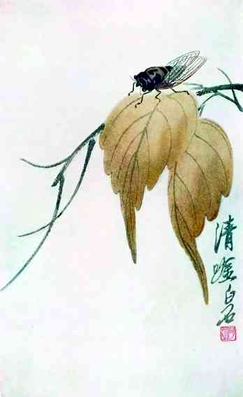 Всё это вместе и сделало его известным художником. В его творчестве начинают проявляться характерные черты "гохуа" - ясность, простота и красочность. В Китае о нем говорят: "Он в малом видел большое, из ничего рождал многое". Поэтому для китайцев столько волнующих чувств таится в рисунке, на котором изображены желтые листья и сидящая на них цикада. В таком рисунке передана чудесная осенняя пора с ее золотом и багрянцем в листьях - своеобразная красота увядающей природы.