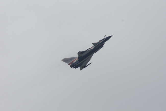 Поистине сенсацией стало выступление на МАКС-2013 пилотажной группы "1-е августа" ВВС Китая, названной так в честь даты создания народно-освободительной армии КНР. Китайцы выступили на пяти высокоскоростных истребителях четвертого поколения собственного производства J-10. Самолет выполнен по аэродинамической схеме "утка" с треугольным среднерасположенным крылом и оснащен российским двигателем.