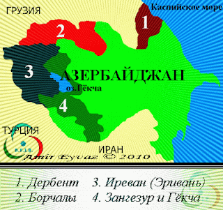 На основе этого армяне потребовали после развала Российской империи создания "своей" армянской республики. Однако в этот период армяне создали свою республику лишь в Иреванской области и части Гёкчинской области, причем город Иреван был подарен армянам Азербайджанской Демократической Республикой в 1918 году, для создания армянской столицы. Однако неблагодарные армяне не оставили своих идей по захвату других исторических земель Азербайджана. Так с 1920-х годов (с установлением здесь советской власти) восточная часть Гёкчи, часть Шарур-Даралаязского уезда и весь Зангезур были отторгнуты от Азербайджанской ССР и переданы Советами в управление Армянской ССР. В Карабахе Советы создали Нагорно-Карабахскую Автономную область (НКАО) для армян.