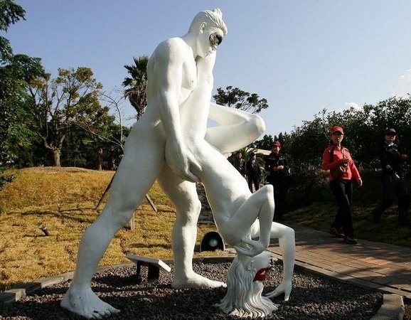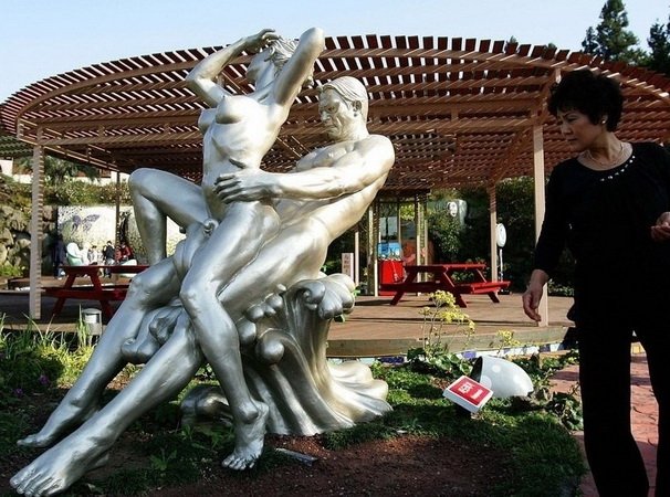 Исходя из названия, ожидаешь, что скульптура представляет собой нечто умилительно-прекрасное вроде женщины, играющей с детьми, или ещё чего то, но подборка называется «10 странных статуй», вы не забыли?