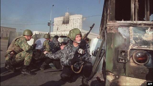 Десять лет назад, в октябре 2003 года, в эфир РС вышли три передачи, посвященные маленькой гражданской войне в центре Москвы. Я был свидетелем этих событий, дневал и ночевал осенью 1993 года в Белом доме и подготовил эти передачи на основе своих репортажей и сообщений коллег, которые работали в те дни в Москве. Подходил к концу первый срок Путина, оставался месяц до ареста Ходорковского, многое тогда напоминало о противостоянии десятилетней давности. Многие политики и эксперты, с которыми я говорил в 2003 году, соглашались, что именно осенью 1993 года сложились предпосылки для прихода к власти в стране людей из спецслужб. Для нашего проекта "Штурм Белого дома. 20 лет спустя" я подготовил сокращенный вариант хроники московских событий сентября-октября 1993 года, а полную версию можно прочитать и послушать здесь:
