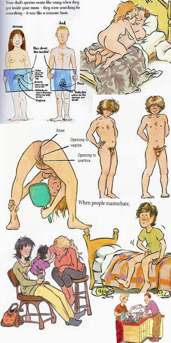 И комментарии, которыми Харрис и Эмберли сопроводили эти чудные картинки: «Когда они обнимаются, член твоего папы осторожно входит во влагалище твоей мамы, и из него вытекает сперма».