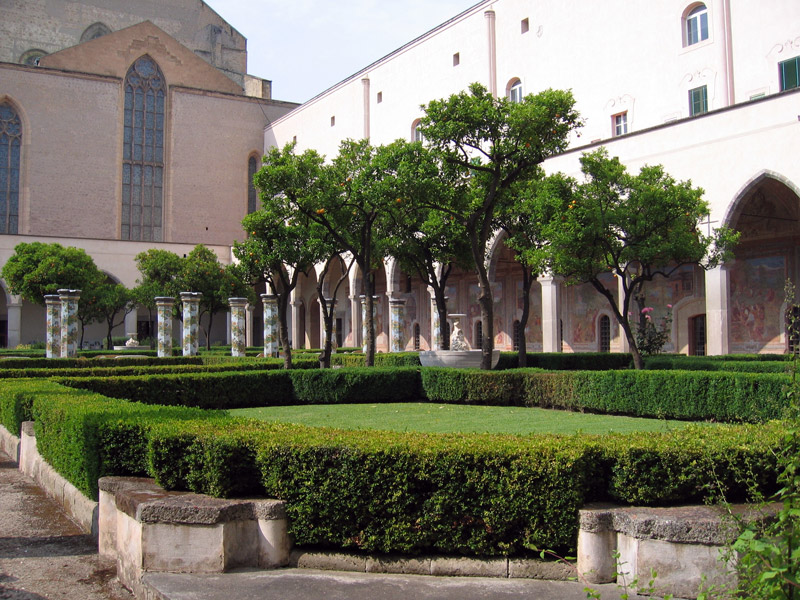 А туристы заглядвают сюда ,чтобы посмотреть прекрасную майолику в саду монастыря Санта Кьяра.Я тоже отправилась в эту церковь с этой же целью.Не стану загружать вас другой информацией о церкви,археологическом музее..Просто посмотрите майолику,которой 300 лет,она находится под открытым небом и по прежнему украшает небольшой дворик монастыря,как и много столетий назад.