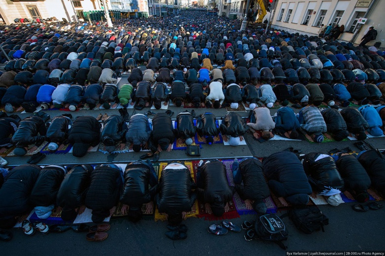 В Москве по традиции центром торжеств стала соборная мечеть у спорткомплекса «Олимпийский», куда пришли десятки тысяч человек. Без комментариев.