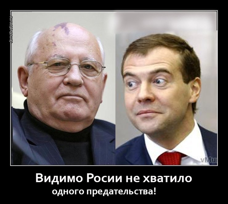 А вот еще горбачёвский перл, в день инаугурации Медведева (2008): «У нас было 10 лет после окончания Холодной войны, чтобы установить Новый Мировой Порядок, а мы всё никак». Горбачёв имеет в виду 10 лет после 1991 года. Так что он сознательно предал свою страну и народ.