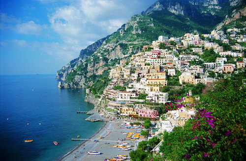 Амальфитанское побережье-одно из самых красивых в Европе.Это пятьдесят километров обрывистых скал и бьющегося о них моря,множество разноцветных городов ,карабкающихся в гору и сотни живописных террас,покрытых лимонными деревьями.Амальфи очень любят сами итальянцы,их можно понять.