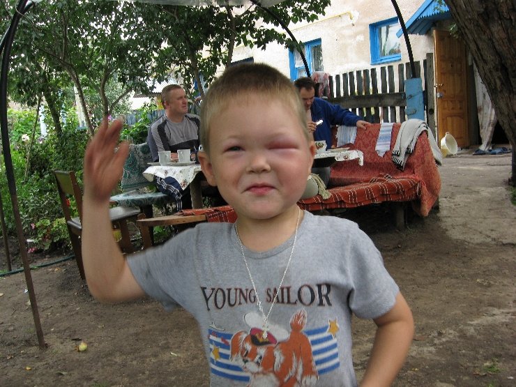 Для меня это самая интересная улыбка. Другие плачут от пчёл, а он улыбается.