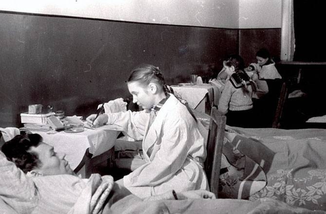 Калининские школьники пишут письма под диктовку раненых бойцов