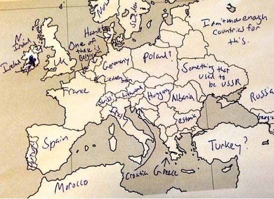 Забавный материал опубликовал недавно польский сайт Kresy.pl – результаты картографического теста на тему «Европа глазами американцев», проведенный порталом Buzzfeed.com. Американцев попросили обозначить на карте Европы названия государств, и результаты говорят сами за себя.