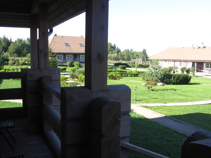 Остановились мы в Пушкинских Горах, в отеле Арина. Отель - это, конечно, условно. Скорее, городок или поселение из бревенчатых изб - изба с двумя входами - два "номера". Приехали ночью, еле нашли, а утром проснулись - кругом такая красота!