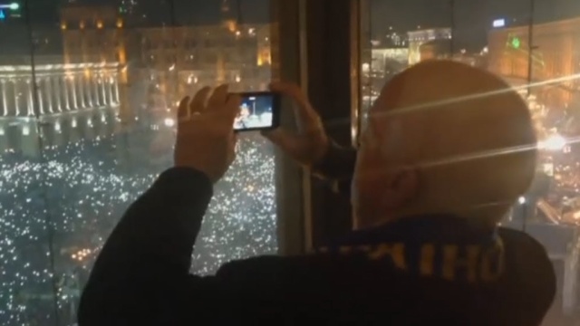 Киев вышел, причем вышел с полным отрицанием всей оппозиции. И тут появляется машинка с трибуной, на которой стоит Яценюк, и вся компания. Народ против этого, их не хотят слушать…