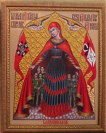 <dl></dl><dl>На фото: благословленная лже-патриархом лже-икона «Богоматерь УНСОвская» с изображением уничтоженных наемников</dl>