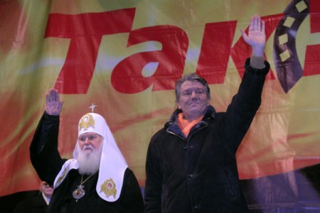 Экс-президент Ющенко и Филарет на Майдане «Оранжевой революции»