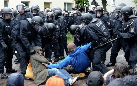 В разгар киевского Майдана (22.12.2013) немчики у себя в Гамбурге тоже помайданить вздумали. (и тоже, кстати по совершенно-надуманному поводу, подстрекаемые кучкой политических пидорасов. С этим так везде, впрочем, с майданами...) Их там мигом угомонили, что вполне правильно, ибо нечего воду мутить.. С водометами, газом, дубинками и пр. спецсредствами, все как положено в мире Свободы и Демократии.