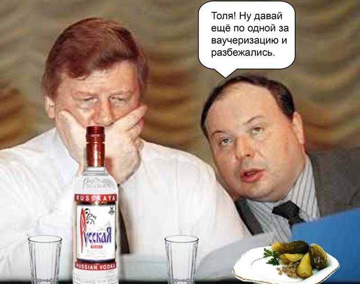 Перед ним стояла задача «сделать реформы необратимыми». Т.е. — максимально демонтировать государственную экономику, раздав собственность кому угодно: хоть «директорам», хоть «американцам», хоть обычным бандитам. На тот случай, чтобы, если случится «красный реванш», — эти новые «хозяева» бились за своё не на жизнь, а на смерть. А это, извините меня, конечно, что угодно, только не приватизация. Потому как приватизация — это кому-то нравящийся, кому-то нет, но понятный и логичный экономический процесс.