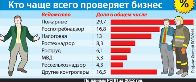 В Минэкономразвития и Российском союзе промышленников и предпринимателей (РСПП) подсчитали: за год различные контролеры от государства проводят почти 3 млн. проверок бизнеса. Но это лишь официальные цифры. Как жалуются сами предприниматели, частенько контролеры заглядывают и просто так. Такой «визит вежливости» нигде не фиксируется и обычно влетает в копеечку.
