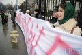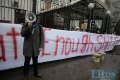 Активисты и представители политической партии "ДемАльянс" провели сегодня под зданием посольство России в Украине акцию, чтобы выразить недовольство вмешательством Президента России Владимира Путина во внутренние дела Украины.