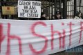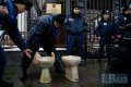 "Путин и Янукович - это два диктатора, которые купаются в роскоши в то время, когда население наших стран еле сводит концы с концами", - заявили в "ДемАльянсе" и принесли под здание посольства "золотые унитазы".