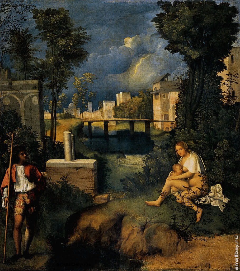 И это чувствуется не только в «Мадонне да Кастельфранко», но и в маленькой по размерам картине Джорджоне «Гроза», написанной им около 1506 г