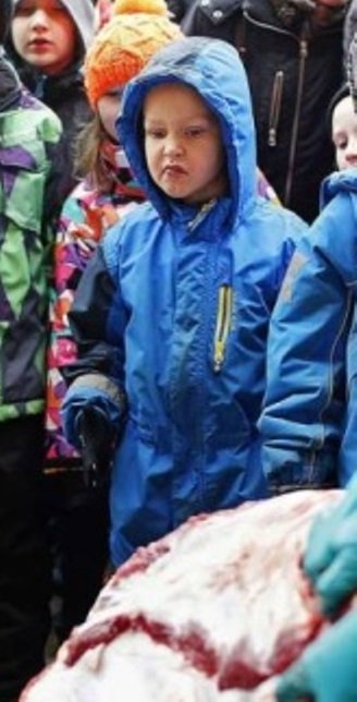 Фотографии ниже не стоит смотреть детям. Но как раз в Дании убивали и расчленяли бедного Мариуса не только на глазах дошколят, но и буквально в метре от них потрошили. В Европе это считается правильным воспитанием.