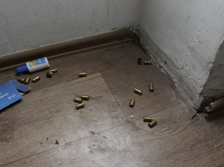 Ті, хто штурмував приміщення, при цьому явно не обмежилися лише тим, щоб взяти зброю – вони ще й повправлялися у володінні нею. На підлозі на першому поверсі лежало чимало гільз від бойових патронів для пістолетів, а в плазмових телеекранах у кімнаті поруч виднілися сліди від куль.