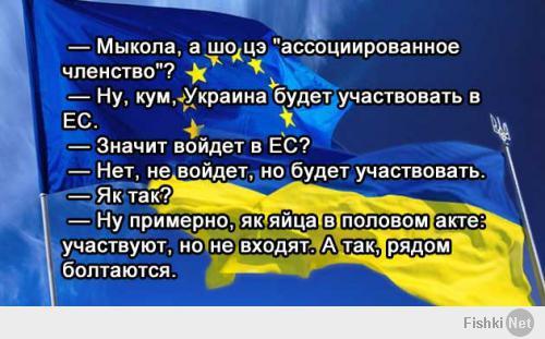 ВТОРОЙ ОТВЕЧАЕТ:- ДА ХЕРНЯ ЭТОТ ЕС- Я БЕЗ РАБОТЫ СИЖУ, ЖЕНА В ИТАЛИИ ПОЛЫ МОЕТ. СЫН ВЫШЕЛ ЗАМУЖ ЗА НЕМЦА, ДОЧКА ПРОСТИТУТКА ВО ФРАНЦИИ!!! А ВО ВСЕМ ВИНОВАТЫ MOSKALI!!! ГОВОРИЛИ НАМ:- НЕ ХОДИТЕ В ЕС, НЕ ХОДИТЕ В ЕС.!