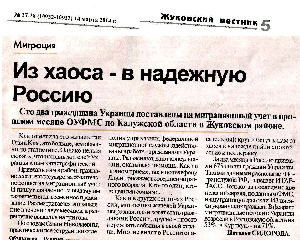 Сюда приехала свояченица с Хмельницкого с гражданским мужем ещё в 2012 году. Встали на учёт. А в этом году приехала её дочь с мужем и лялькой.
