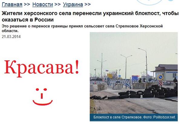 "Совет села Стрелкового в Херсонской области, на южной окраине которого стоят как украинский, так и российский блокпосты, принял решение о переносе украинского блокпоста на северную окраину.
