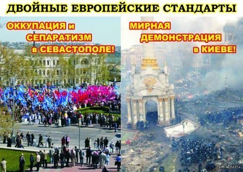1. Майдановцы, которые не просто избивали, но убивали людей, забрасывали камнями и коктейлями молотова, под чёрно-красными флагами и флагами ЕС и кричали: "мы европейцы, мы хотим в Европу", по-вашему, не бандиты, а харьковчане и другие люди ЮВ, которых избивают правосеки, на усмирение которых едут БТРы, и которые говорят "мы русские, мы хотим в Россию" бандиты? Почему?
