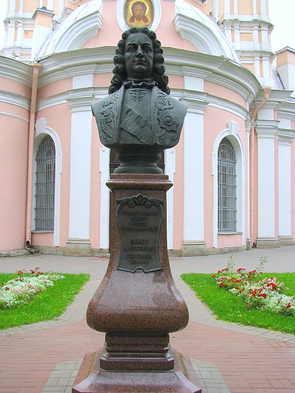 Здесь же установлен бюст первого кавалера ордена. Им стал в 1699 году дипломат Фёдор Головин.