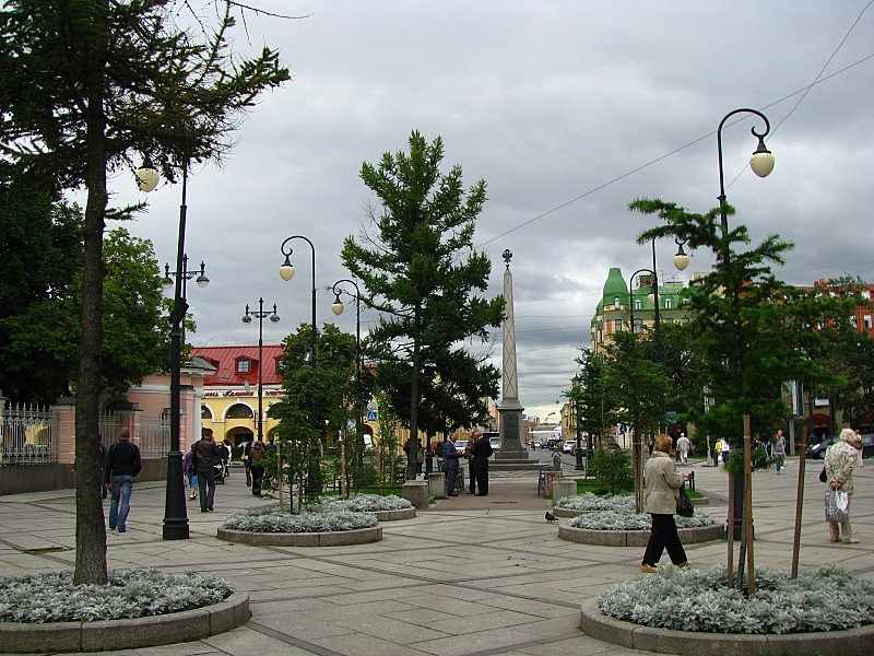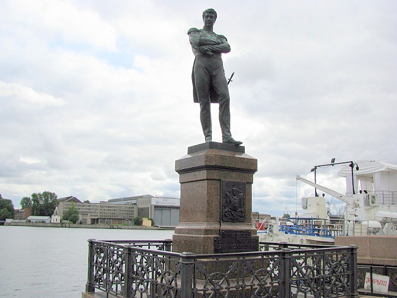 Стоит напротив своей alma mater - Морского кадетского корпуса, а теперь Морского корпуса Петра Великого.