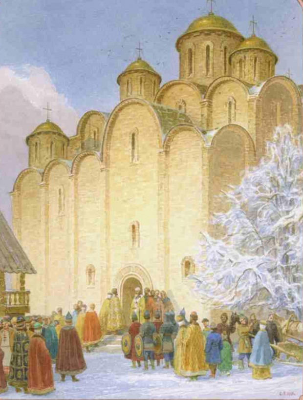 Есть также свидетельства, что в современный Владимиру период в Киев строить церкви приглашались зодчие из соседней Булгарии, с ханом которой МуэминомII у Святославича были прекрасные отношения. Как вы думаете, какие культовые сооружения могли строить на киевской земле специалисты из мусульманской страны? По-моему ответ ясен, они строили то к чему привыкли – мечети.