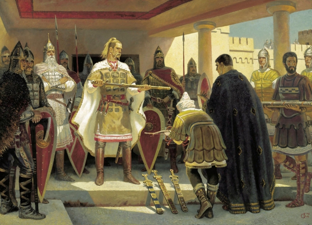 Куда делся биологический отец ребёнка? Не суть важно, бежал или убит, не исключено от руки самого Святослава. С нашей точки зрения странные обычаи, но чего не сделаешь ради политики. Да и в условиях узаконенного многожёнства подобные эпизоды не носили фатального характера. Что делать, времена были жестокие, и женщин брали как крепости – приступом, не считаясь ни с чем.