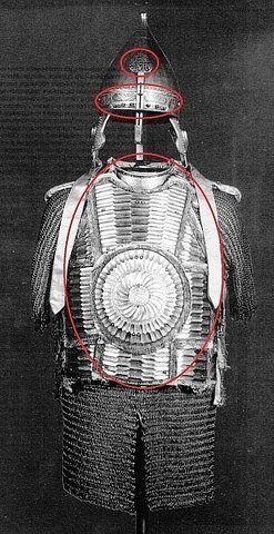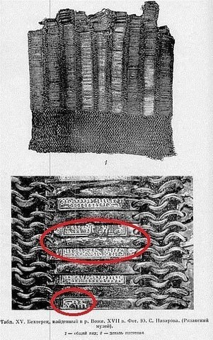 Арабские надписи (обведены красным) на доспехах и оружии русских воинов. Экспонаты Кремлевской Оружейной палаты. Цветные иллюстрации любезно предоставлены пользователем интернет-портала СМИ2 с ником Aslan Mager