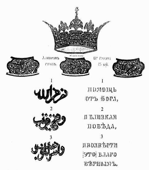 Рис. 88. Арабская надпись на шлеме Александра Невского. Рисунок из книги «Древности Российского государства» (М., 1853).