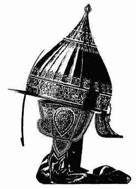 Рис. 89. «Арабская надпись — обычная принадлежность богатых русских шлемов». Рисунок из книги «Древности Российского государства» (М, 1853).