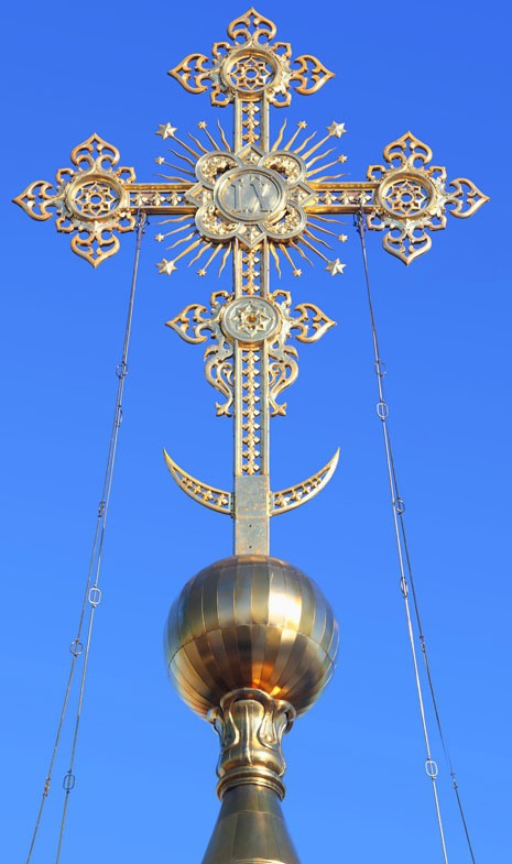 В первую очередь … вызывает жгучий интерес Цата. Это полумесяц в основании накупольных крестов православных храмов. Канонически однозначного значения Полумесяца нет. А это верный признак загадочного прошлого, возможно сфальсифицированного. Между тем православная энциклопедия сообщает, что после падения Византии Османы убрали крест и оставили полумесяц своим символом. …