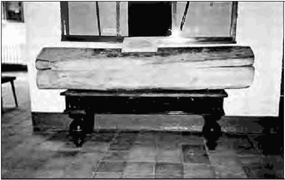 Рис. 1.29. Колода-гроб Симеона Ульянова в музее «Терем царевича Дмитрия» в Угличе. Фотография 2000 года.