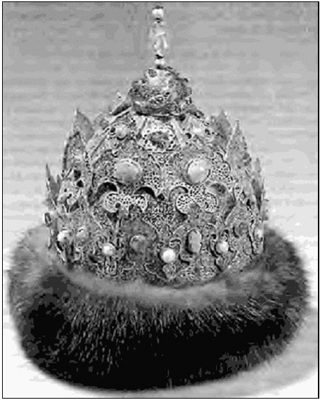 Рис. 1.25. Митра 1626 года. Вклад русских князей Мстиславских. Спереди — большой драгоценный камень, на котором нанесена АРАБСКАЯ надпись. Взято из [809].