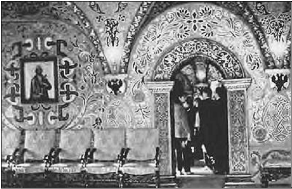 Рис. 2.205. Вход в царскую опочивальню, дальнюю комнату Теремного=Гаремного дворца в Кремле. Там сегодня стоит КРОВАТЬ.