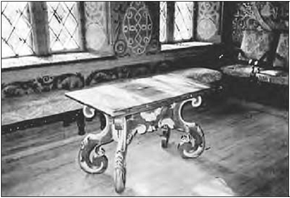 Рис. 2.211. КРОВАТЬ, якобы неправильно установленная археологом XIX века Рихтером в Теремном=Гаремном дворце Московского Кремля.
