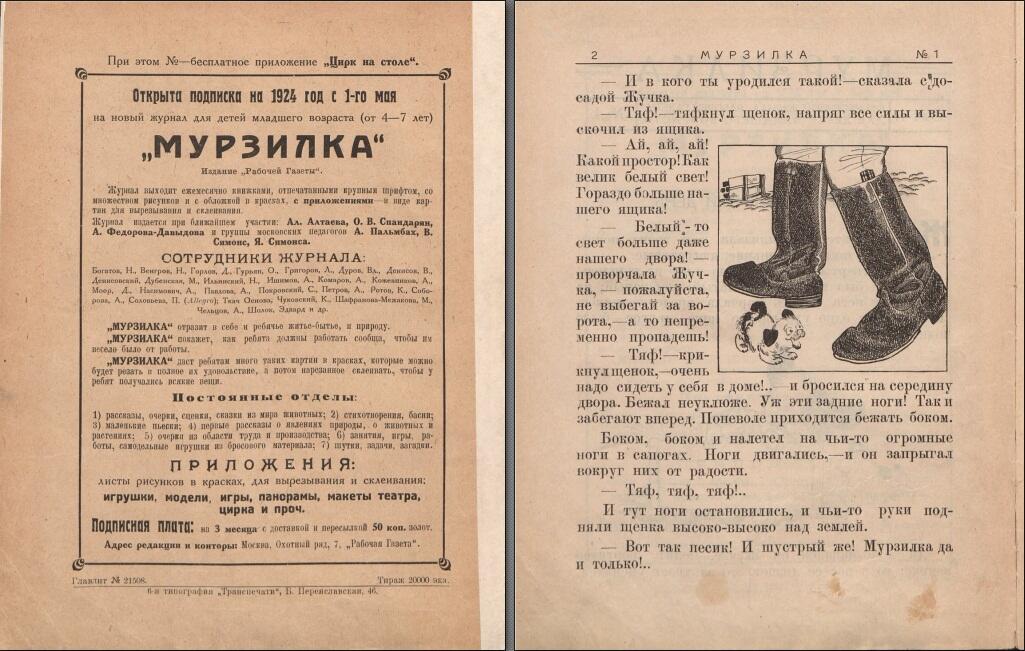 16 мая 1924 в СССР вышел первый номер журнала «Мурзилка». Теперь Мурзилка был маленькой белой собачкой и появлялся вместе со своим хозяином — мальчиком Петей. В 1927—1928 г.г. при журнале выходила «Мурзилкина газета».
