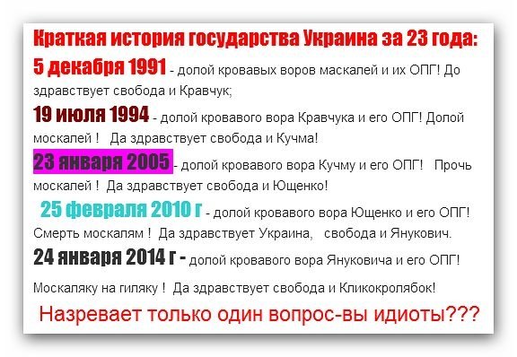 Я знаю огромное число украинцев (и в школе, и в институте учились, и работали, и сейчас нормально работаем) разные точки зрения, разные мнения, но нет такого оголтелого словесного поноса.