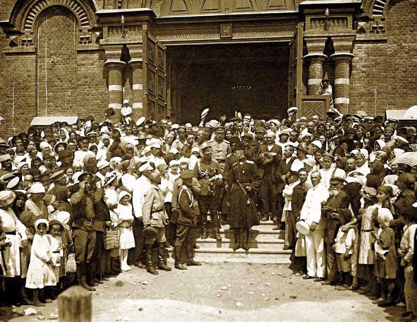 Генерал Петр Николаевич Врангель на выходе из храма после парада и молебна. Царицын, Россия. 15 октября 1919 года. (Фото из коллекции альбомов графини М. Н . Апраксиной, дочери личного секретаря генерала барона П. Н . Врангеля — Н. М. Котляревского) |