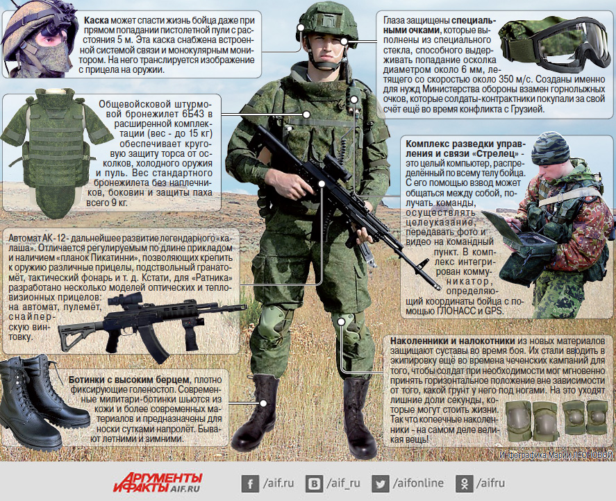 Новая боевая экипировка «Ратник». Инфографика: АиФ / Мария Леонова