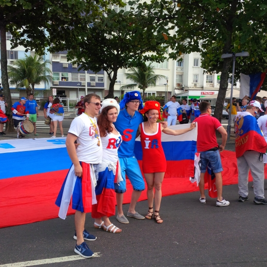 Наши болельщики собрались в половине одиннадцатого утра прямо у пляжа Копакабана, на пересечении Авениды Атлантика и улицы Rua Miguel lemos.